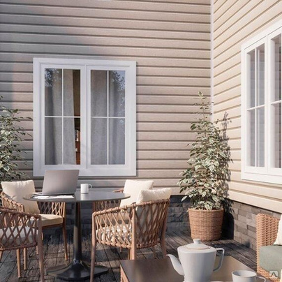 Виниловый сайдинг ТН ОПТИМА Корабельный брус применяется в коттеджном, дачном, хозяйственном и промышленно-торговом строительстве. Это легкий и простой в монтаже материал, с помощью которого можно быстро обновить фасад. Наличие вентилируемой подсистемы обеспечивает отсутствие плесени и влаги в конструкции фасада.