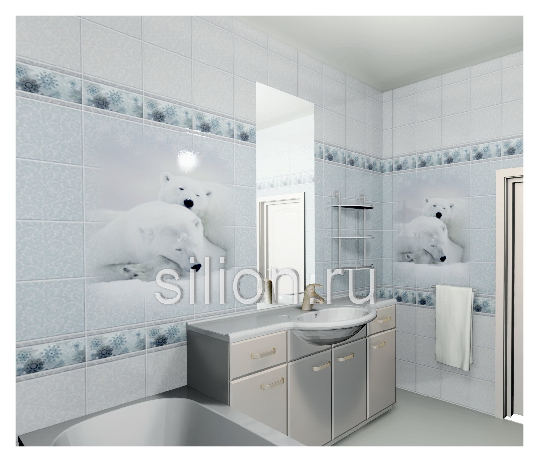 Стеновая панель ПВХ с 3D эффектом "Зимняя сказка" Медведи 2.7м кратно упаковке
