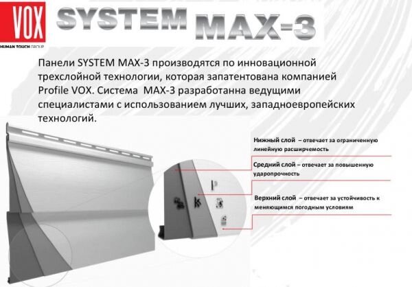 Кроме того, сайдинг VOX MAX -3 в период эксплуатации не подвержен коррозии, не выгорает и не требует специального технического обслуживания и покраски.